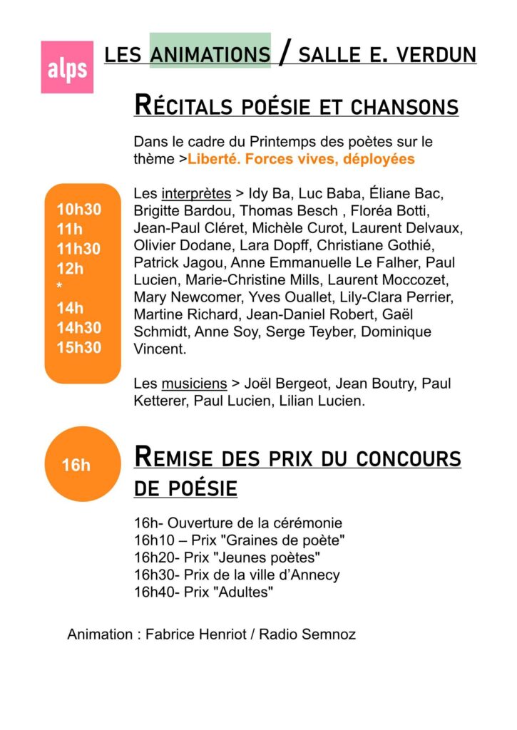 - Ateliers d’écriture slam/poésie