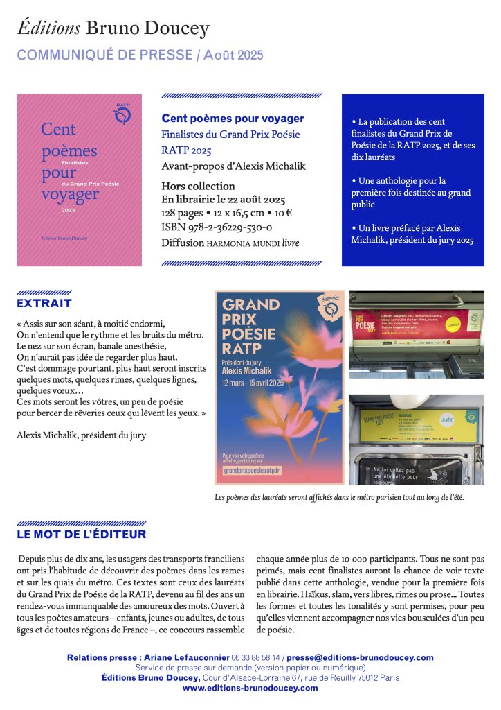 Lauréat du grand prix RATP de la poésie 2025